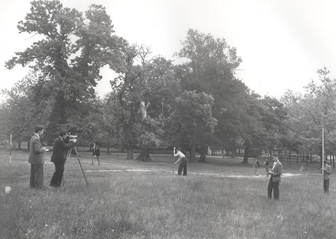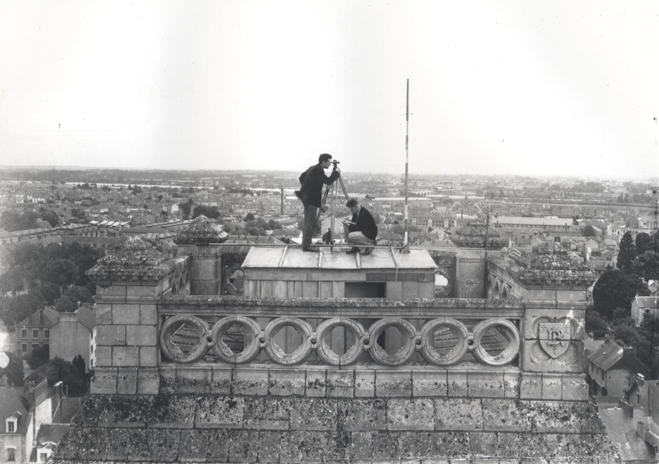 L’appareil est un théodolite Type T2 qui sert à mesurer des angles horizontaux pour calculer un relèvement. La photo a dû être prise dans les années 50, maxi 60. Elle semble être orientée sud-est. On aperçoit la Loire en arrière-plan.