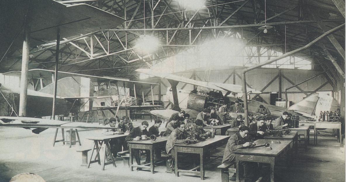 Gilbert Plouhinec, professeur de fabrication mécanique." Merci à Gilbert pour son action en faveur de l’Aéroscope. Les avions sur la photos sont deux Bréguet XIV et un Potez XV. Dans les années 30, Livet assurait une formation pour les candidats à une carrière de mécanicien dans l’Armée de l’Air.
