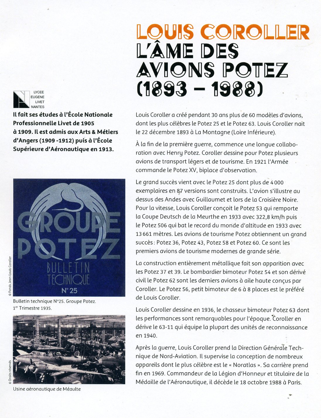 Louis Coroller a créé pendant 30 ans plus de 60 modèles d’avions, dont les plus célèbres : le Potez 25 et le Potez 63.