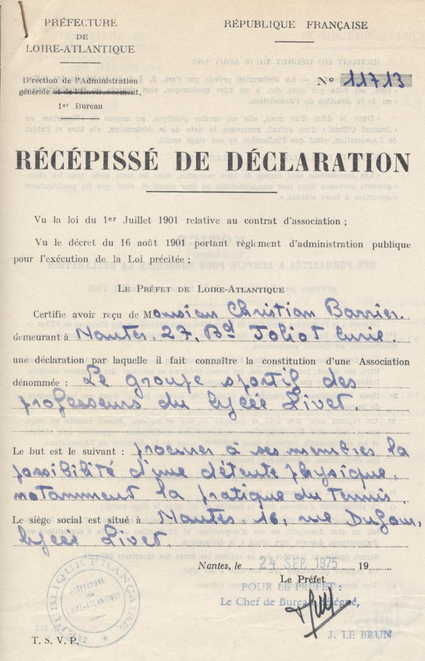 ARTICLE 1 : Le G.S.P. Livet a été créé en Janvier 1963 par un groupe de Professeurs avec l’accord du Chef d’Établissement qui s’est joint à eux.