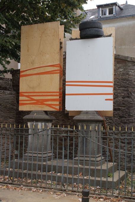 Protection des croix lors d’un chantier de construction en septembre 2010.