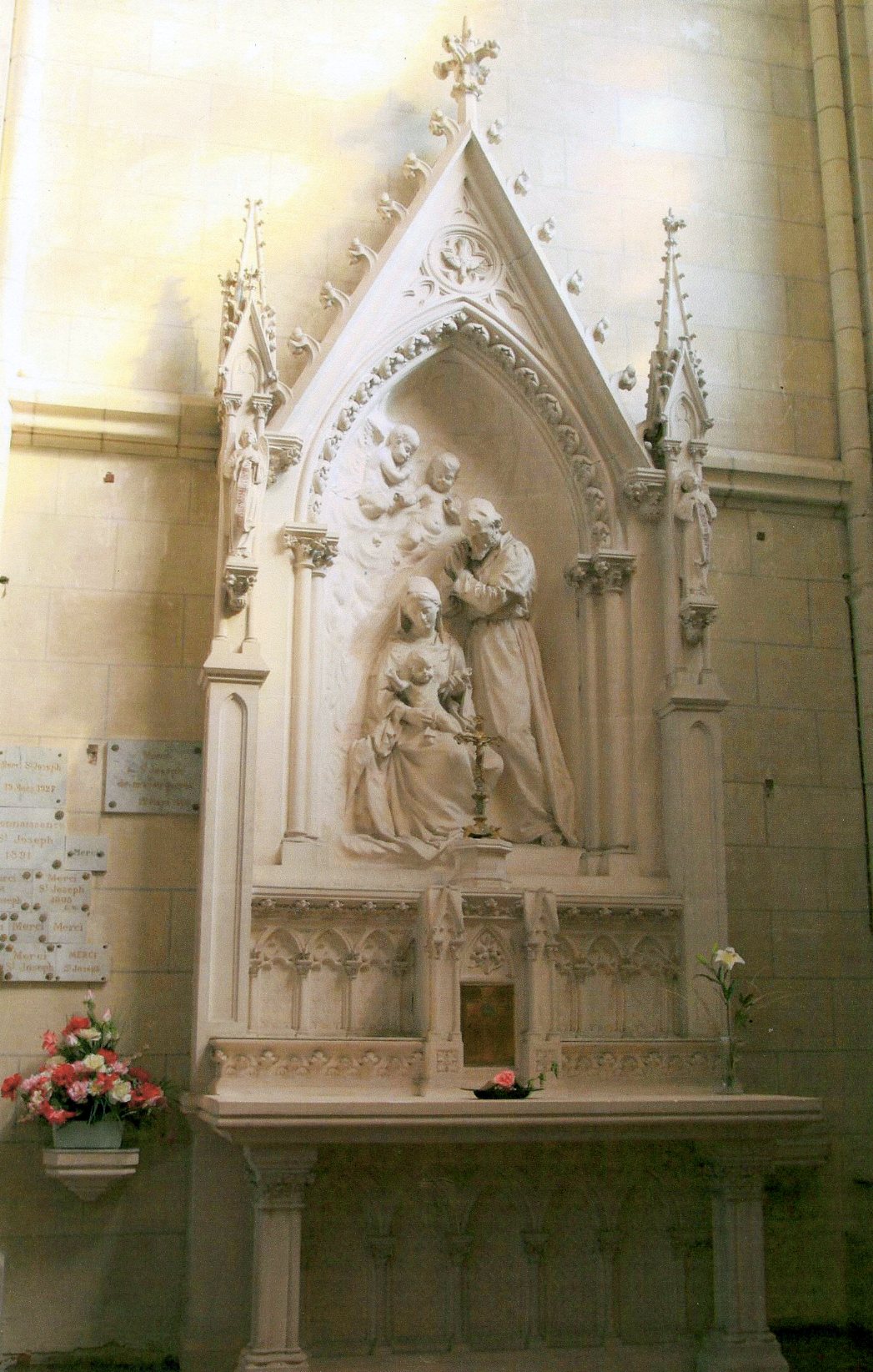 La statue en bronze de Francis Robert a bien été fondue pendant la 2ème guerre mondiale. Le moulage qui a été fait à cette occasion, ne concerne que le buste de F.Robert, aucun moulage n’a été fait pour le groupe sculpté. La statue actuelle de F.Robert refaite par Dautel après la guerre, après plusieurs emplacements à l’intérieur de la ville, est visible aujourd’hui le long de la départementale du côté de l’hôpital.