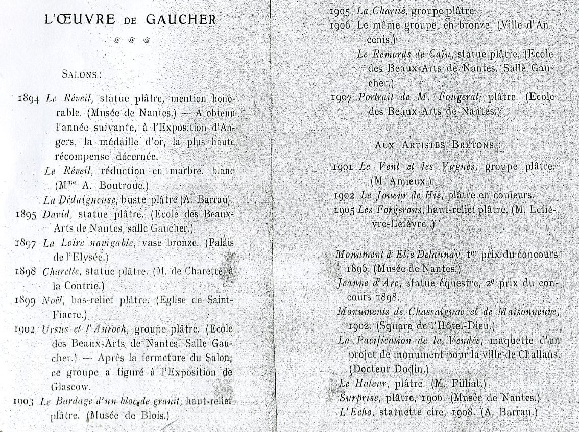 Dans le palmarès des prix de l’École des Beaux-Arts à partir de 1904, E. Gaucher y figure au titre de professeur de 1904 à 1907