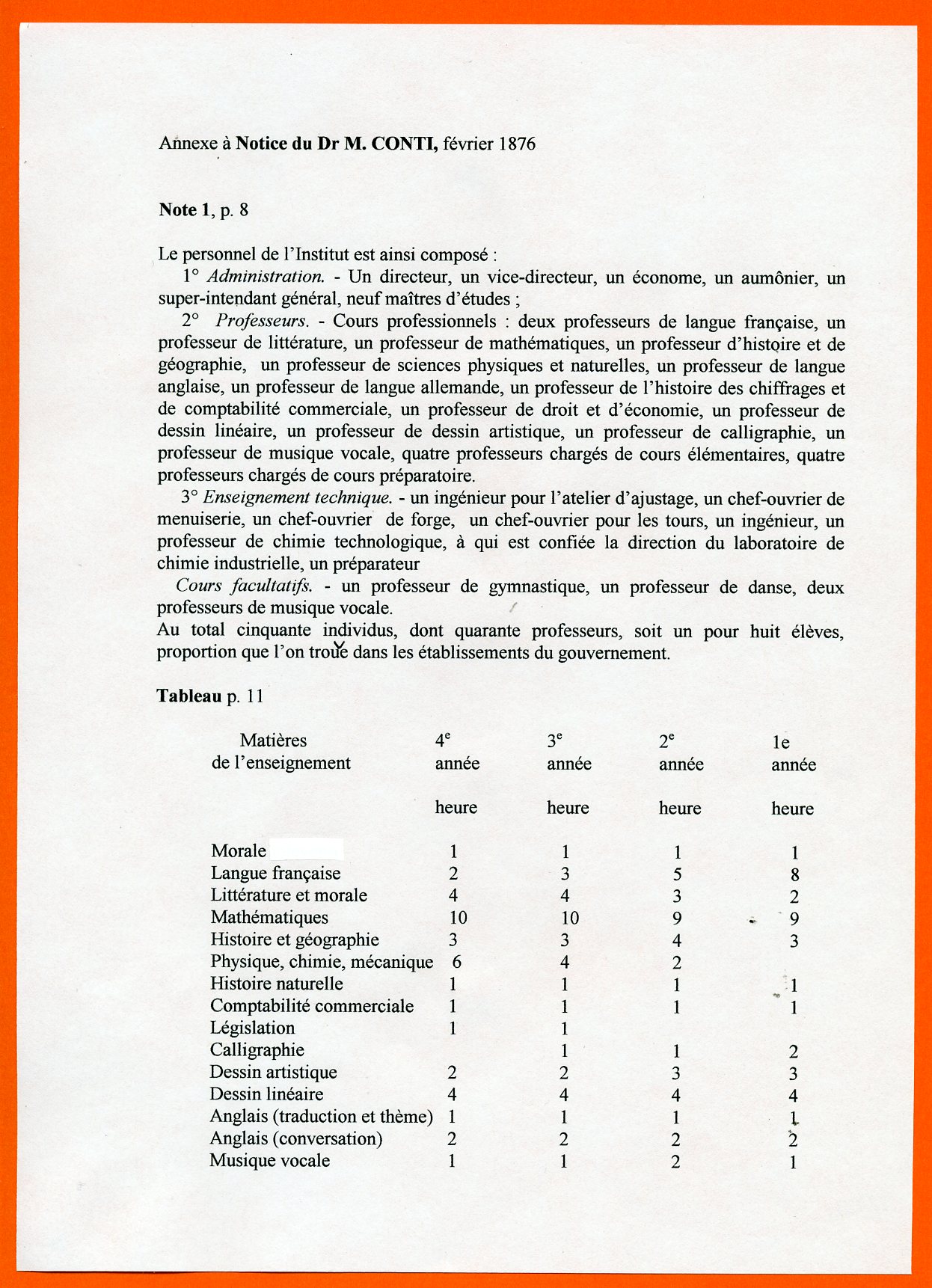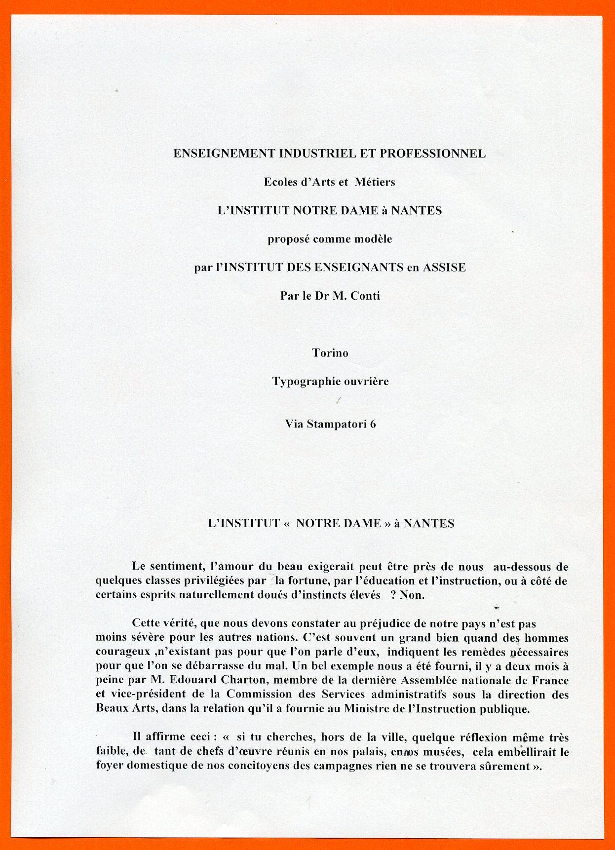 Dott. M.Conti. Turin, février 1876